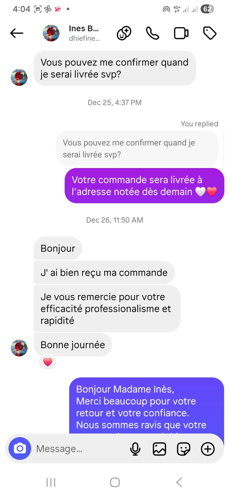 Salem okhti, On vient juste de recevoir notre commande. Merci beaucoup pour